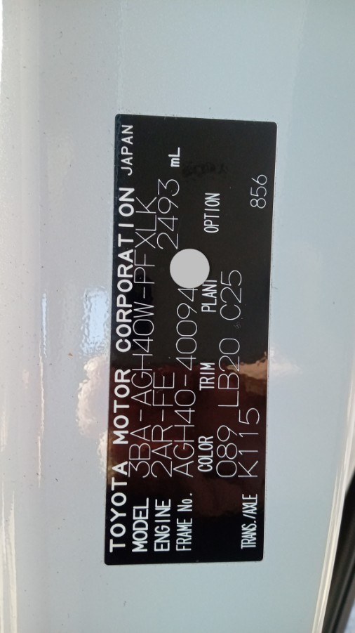 Chassis #: AGH40-40094XX